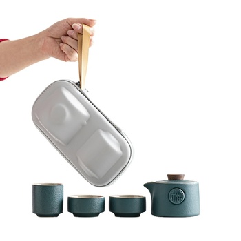 ชุดน้ำชาเซรามิกสีดำสำหรับเดินทางเครื่องปั้นดินเผาแบบพกพาถ้วยปิดเร็วหนึ่งถ้วยสองถ้วยชุดกาน้ำชาสำหรับใช้ในครัวเรือนของขวัญเล็กๆ